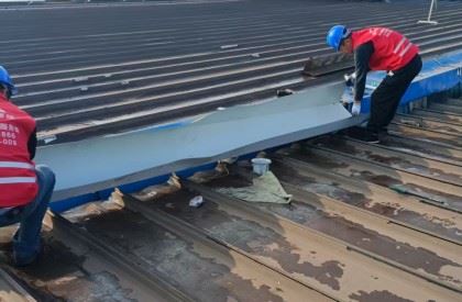 韶关雨中行圆满完成某大型工业厂房彩钢瓦屋面翻新工程